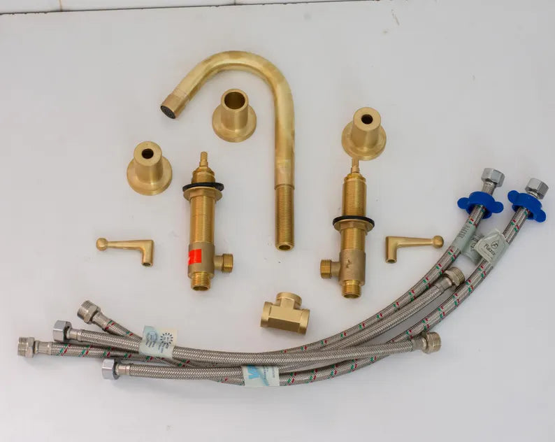 Upgrade your bathroom with this luxury 3-hole brass faucet, crafted from solid unlacquered brass for a timeless and elegant look.
